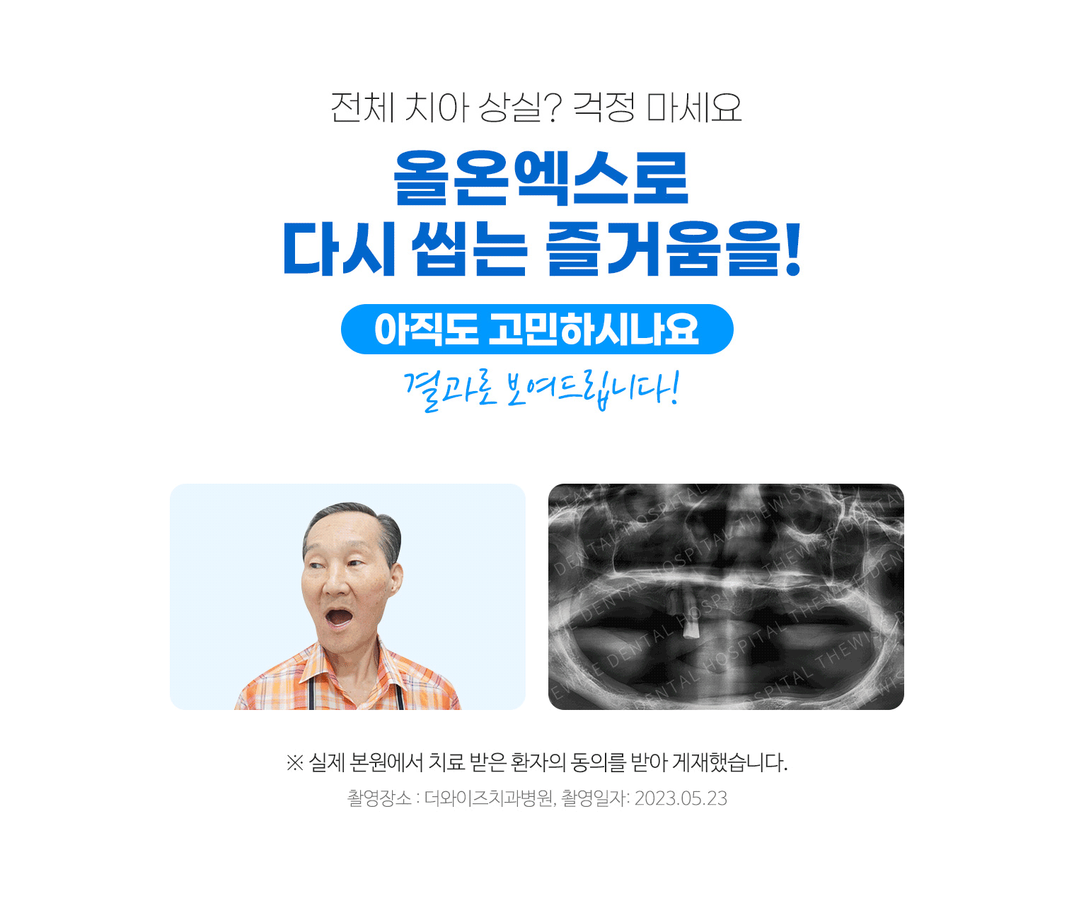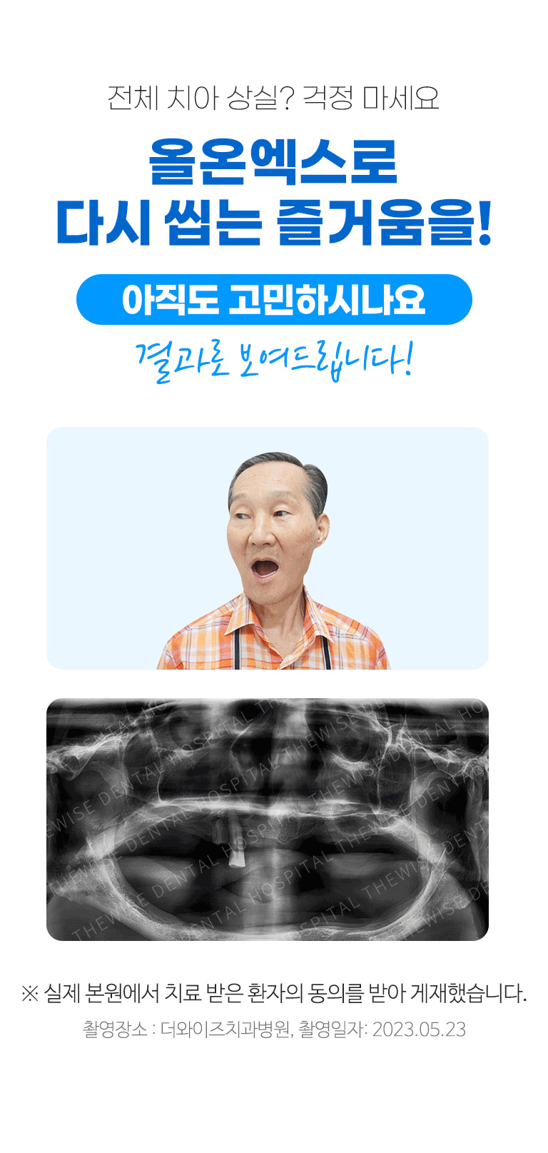 치아가 없어도 고정성 전체 임플란트로 회복할 수 있어요!